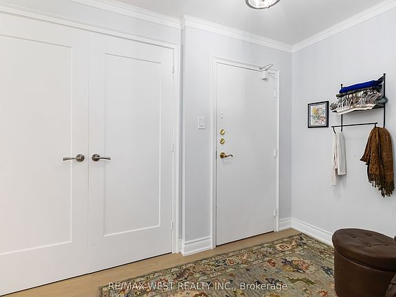 Exquisitely redesigned 2 Bed + Den corner unit in the prestigious Ennisclare on the Lake! Professionally renovated in 2020, this 1,576 sq. ft. home features floor-to-ceiling windows throughout, hardwood floors, custom cabinetry, imported Italian marble, quartz countertops, and premium stainless steel appliances. The chefs dream kitchen overlooks the sunken living room, perfect for entertaining. Enjoy three walkouts with abundant natural light. The massive primary bedroom includes a spa-like ensuite with detailed tile shower, while the oversized second bedroom has a double closet. The unit also has its own laundry room, a separate storage room, one parking space, and one locker. A beautiful combination of luxury, style, and comfort in one of Oakvilles most desirable lakefront communities.