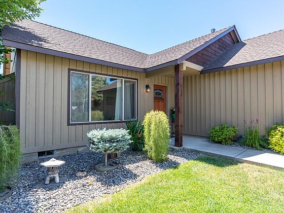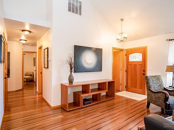 Perfect NE Bend location cute Craftsman style single level home. Open concept great room featuring vaulted ceilings and gas fireplace with tile surround and custom wood mantle. Features include solid-strand bamboo flooring throughout living spaces and tile in bathrooms. Backyard is fully fenced, landscaped and with a pergola covered patio. Central a/c to keep you cool for the hot summer days. Recently painted interior and exterior completes this home!