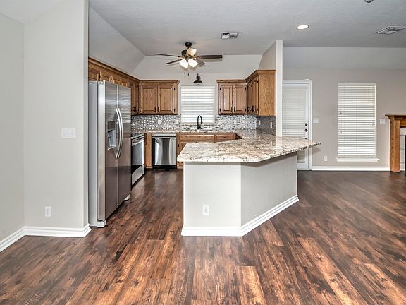 This exceptional red brick home is such an great find in the Westgate Addition. Home was built in 2001 and updated in 2023. Has thick granite counter tops and all appliances are new, refrigerator 6 months old, stove, dishwasher and microwave are 1 year old. Beautiful cabinetry and so much storage throughout the house. Living area has some corner built ins and home has new fixtures throughout. The home offers a split bedroom plan. The primary bathroom has a window seat for extra storage as well as his and hers closets. One bedroom can be used as an office or a bedroom as there are built-ins to accommodate an office. Home has a 640 s.f. garage as well as a detached garage for a man cave or can be set up for office or that prize car. Property has a concrete pad for an RV or an additional car as well as a large storm shelter and a storage building. Property has a sprinkler system that is on a separate meter. This property is close to the middle school, the walking trail, the Simmons Center as well as a short distance from the hospital. THIS HOME HAS SO MANY EXTRAS AND IS SUCH A STUNNING HOME. CALL Melody at 580-656-3023 to schedule a personal viewing.