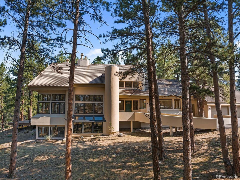Welcome to 2185 Pinedrop Lane, a stunning modern residence nestled in the heart of Genesee, Colorado. This elegant home boasts 3 bedrooms, 4 bathrooms, and an expansive 5288 square feet of living space on a 1.62 acre lot. Step inside to discover a host of luxurious amenities, including a fully remodeled kitchen with contemporary fixtures, a gas cooktop with a down draft, and all new appliances. The newly refreshed bathrooms feature exquisite Terrazo tile and new countertops. High ceilings and skylights brighten up the interior throughout, creating an airy and inviting ambiance. Entertain effortlessly in the open-plan living area featuring a wood-burning fireplace, ideal for cozy gatherings. The brand new Trex deck offers an idyllic spot for al fresco dining with unbeatable views for miles! Not to be missed the communal outdoor space, pool, tennis court, gym, and playground provide ample opportunities for relaxation and recreation. Don't miss the chance to make this home yours!!