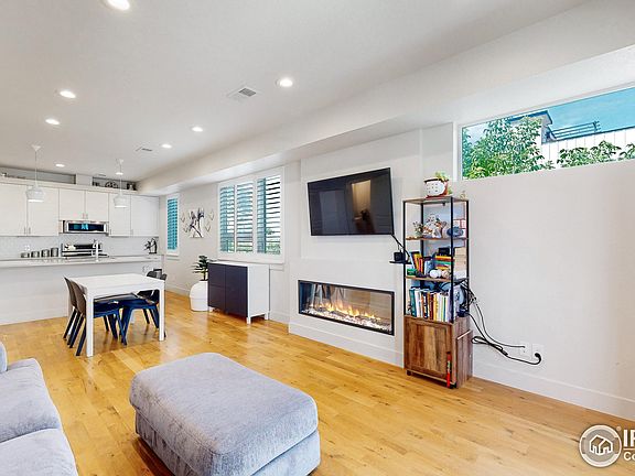 Welcome to this incredible end unit townhome in Denver with stunning downtown and mountain views from the rooftop deck. Great location for commuting to Downtown Denver, DTC, or DIA. Enjoy entertaining guests on this open-concept main level with flowing hardwood floors, a large family room with a modern Cosmo fireplace, and access to the deck. The chef in your home will love cooking in this modern kitchen with stainless steel appliances, contemporary cabinetry, quartz counters, an island, and a dining area. Upstairs you'll find the primary suite with an attached 3/4 bath and covered balcony. The upper level is completed by another bedroom and a full bathroom. Enjoy summer BBQs on the large rooftop deck which is the perfect spot to host guests with great panoramic views. The ground level of this property boasts access to the attached two-car garage and coat closet. Hurry, this move-in ready townhome with awesome amenities could be yours!