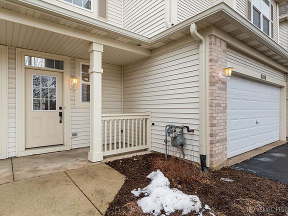 Welcome to 2185 Sunrise Circle. Very open, spacious and bright floor plan. As you enter you are greeted by a two-story foyer and generous living space. Spacious kitchen with newer stainless steel appliances, loads of counter and cabinet space and a large pantry. Enjoy your morning coffee in the breakfast area with access to a private patio and beautiful view. Primary bedroom features large walk-in closet, and private en-suite bathroom with double sinks, separate shower and large soaker tub. Secondary bedroom has a nice-sized closet with private bath. Unit recently painted. Upgraded hardware on all doors. Carpets just cleaned. Second-floor laundry complete with washer and dryer. Two-car garage. Newer thermostat which can be controlled by your phone - very energy efficient. Great location with Oswego 308 schools. Nothing to do ~ just move in!