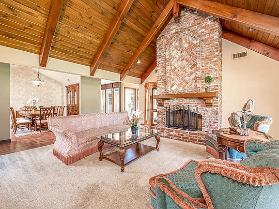 Welcome to 2185 West Birch, a corner estate that sprawls over a 17k+ square foot lot located in Van Ness Extension. Admire the mature trees while you walk towards the grand entryway, equipped w/ double doors, side paneling & stain glass windows. Step foot onto the hand laid brick entry, while gazing up at the tongue & groove ceiling and grand chandelier, which set the tone for the entire home. Walk to your left & find the master that overlooks the backyard, an office where the walls are covered w/ windows & built-in bookshelves, and an additional bedroom & bathroom. Walk towards the opposite side of the home & find the formal dining room w/ a wall of windows, a family room w/ a brick detailed fireplace that spans from the floor to the wood beamed vaulted ceilings. Walk down the wall of windows that overlook the courtyard & towards the additional two beds & bath. The courtyard also guides you to the expansive open living, dining & kitchen.