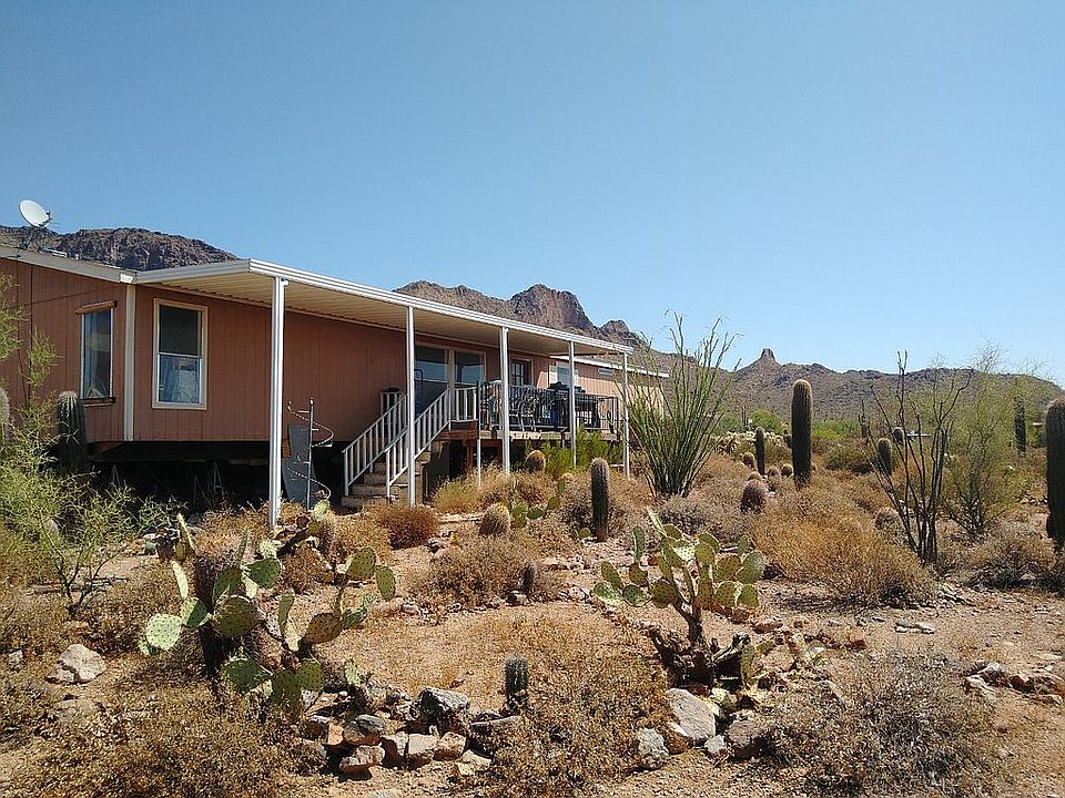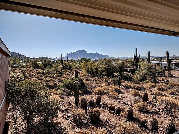 FOR SALE: ONE AND 1/4 ACRES OF HORSE PROPERTY NESTLED AGAINST THE GOLDFIELD MOUNTAINS WITH MILLION DOLLAR VIEWS OF APACHE JUNCTION, THE SUPERSTITIONS, THE EAST VALLEY AT LARGE AND BEYOND TO MOUNT LEMON... PROPERTY IS ON A SHARED WELL WITH A DIAMOND IN THE ROUGH FOUR BEDROOM MANUFACTURED HOME, AFFORDING YOU THE OPPORTUNITY OF STARTING WITH A BLANK CANVAS TO CREATE YOUR DREAM HOME AT THE END OF A PRIVATE ROAD, IN AN AREA BOUNDED BY THE TONTO NATIONAL FOREST TO THE NORTH AND STATE TRUST LAND TO THE SOUTH.