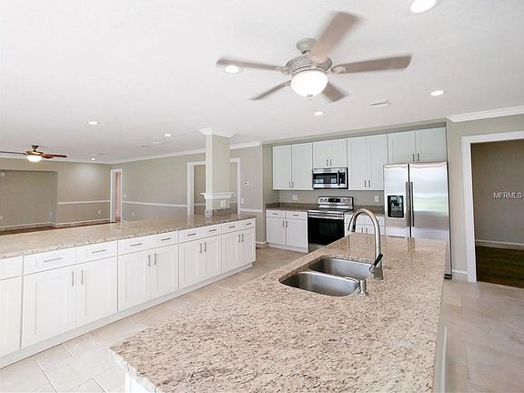 - Interior Features: Ceiling Fans(s), Master Bedroom Downstairs, Crown Molding, Walk-In Closet(s), Open Floorplan, Eating Space In Kitchen, Kitchen/Family Room Combo, Stone Counters
