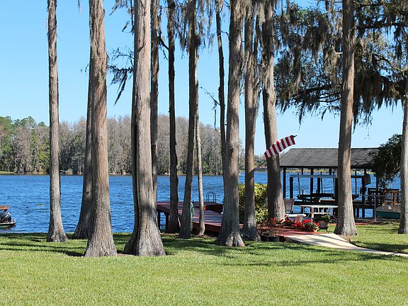 GORGEOUS SKI LAKE HOME W/2 MASTER SUITES. Pride of Ownership Shines Through on this Recently Remodeled 3172 sq. ft. 5 Bedroom, 3 Bath Home located directly on a Magnificent 84 Acre Ski Lake. Loaded with options & upgrades! Paver Driveway leads up to the Double Leaded Glass Front Door Entry. Elegant Foyer boasts a Custom Built-In Wall Unit & Gleaming TERAZZO Floors. Stunning Kitchen with solid wood cabinetry, Sleek Granite Counter tops & Full Eating Area. In the Oversized Great Room you can enjoy a Theater Experience with Built in Surround Sound + There's also a full wall of windows that overlook the Lake. Out back you'll enjoy the covered paver patio with Outdoor Kitchen, your PRIVATE boat ramp, boat cover, dock and sandy lake front area that's perfect for Jet Skis! Split Bedroom Plan with The In-Law Suite has a refrigerator, sink w/granite countertops. The Home Office has a view of the lake and boasts a built in desk with custom glass cabinets & shelving. Flood insurance is not required, no HOA, water or sewer bills. Some of the updates include: Energy Saving Dual Pane Windows, Plantation Shutters, St. Augustine Grass, irrigation with drip system & weather station, 2 air conditioners, Instant Hot Water at every faucet, mature privacy hedges, fencing, dog run, Custom tiles in Baths include Travertine marble & Porcelain Tiles with Upgraded Faucets, Lighting & Mirrors, exterior storage shed and LOTS of Parking. additional options & upgrades list provided in the MLS.