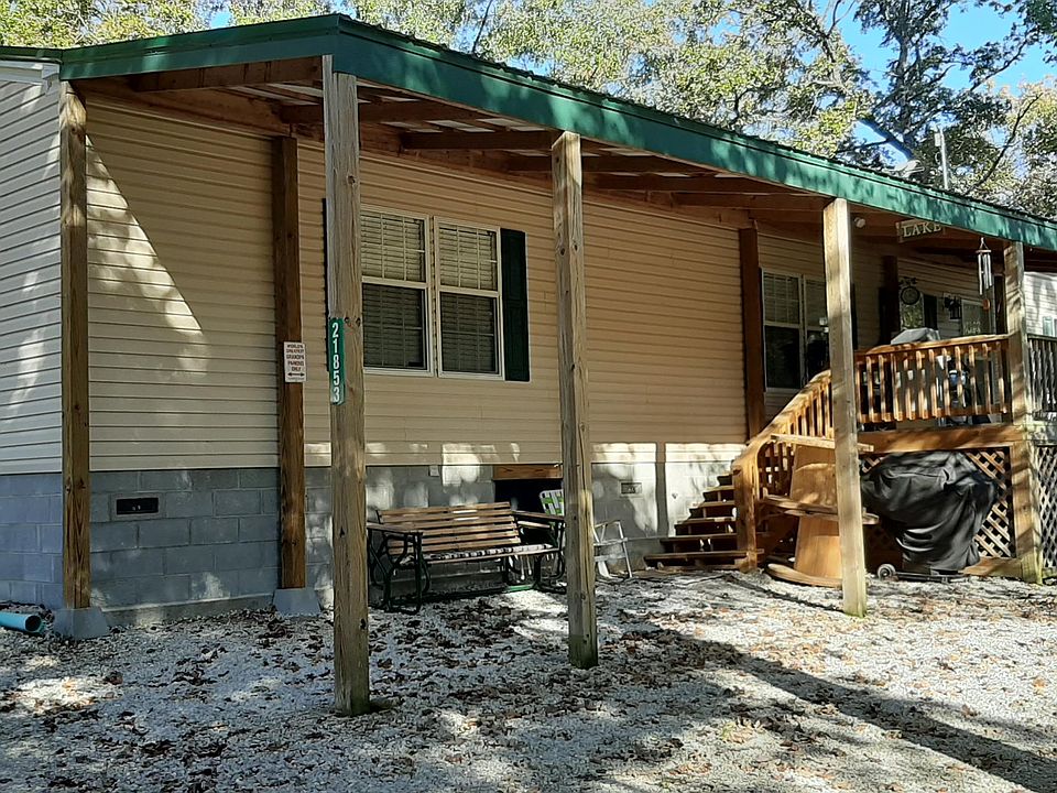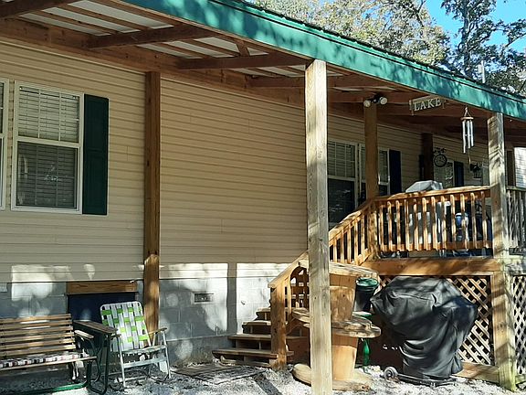 Super clean 2 bedroom/2 bathroom property in Capri Estates subdivision. Property is 8 years old with metal roof and vinyl siding so very low maintenance/upkeep. The kitchen/living combo offers you space to entertain as well as the spacious covered deck that overlooks the nicely shaded back yard. You will love the size of the master bedroom with walk-in closet and a full bathroom. Utility room conveniently located off the kitchen. Kitchen appliances plus washer/dryer are staying. Property includes a shed with two lean- tos for storage. The half acre corner lot allows room to add a garage/outbuilding if desired. Great location in Carson's Corner area and less than a minute to the concrete boat ramp with courtesy dock.