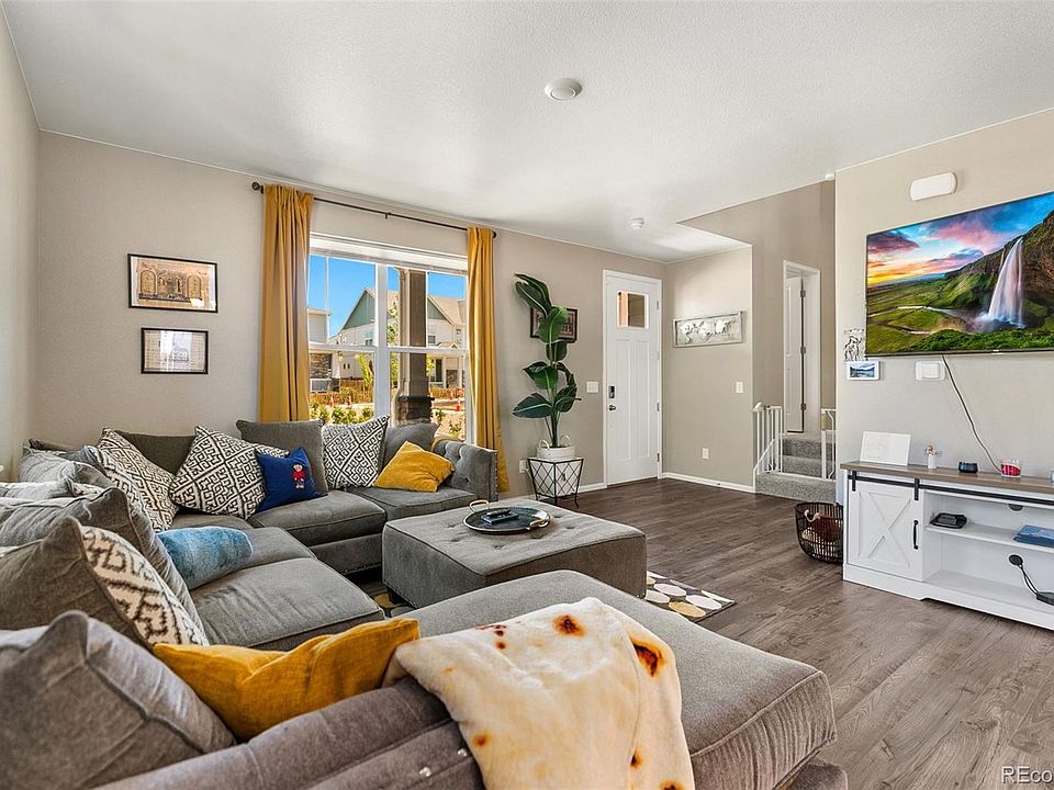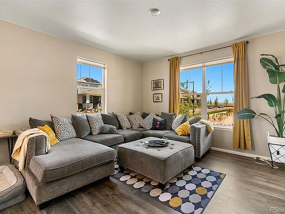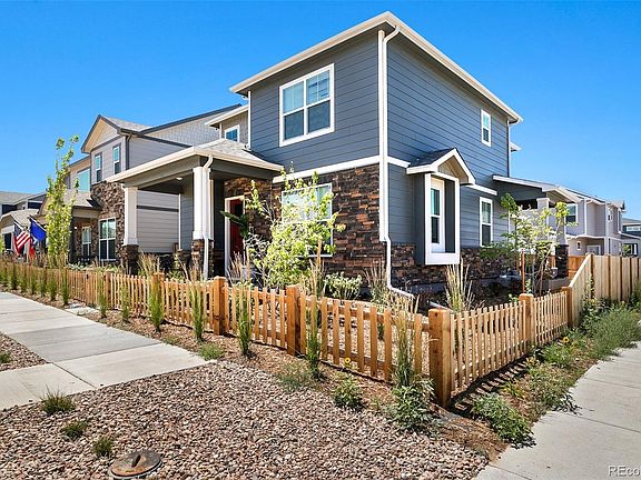Seller is highly motivated and would consider a buyer who would like to rent to buy! This home has been price to sell! Brand new master-planned community within a short distance to Walking Trails, Open Lawns/Event Lawns, a Nature Discovery Corridor, Playgrounds, Picnic Area, Tennis Courts, Dog Park, and Pocket Parks. This 2-story home finished in 2021 is located in the up-n-coming Horizon Uptown! Inside this home you will find beautiful light grey kitchen cabinetry with crown molding, granite countertops with an under-mount sink, tile backsplash and stainless steel appliances including an upgraded gas range. On the second level, you will be greeted by 3 bedrooms, and a laundry room making all the laundry a breeze to-do. The primary bathroom comes complete with Quartz countertops and gray-toned laminate flooring in all three bathrooms. Enjoy Central Air Conditioning for those hot summer days/nights and the WiFi enabled garage door opener makes it a breeze to come and go. Private yard is left to the new owners to make it their own! Conveniently located close to Buckley Air Force Base and E-470.