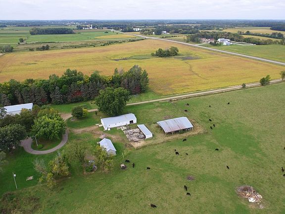80 Acre Hobby Farm - this property has so much to offer! Well cared for 4 bedroom home with attached garage and spacious four-season porch. All amenities on one level and beautiful hardwood floors in kitchen, dining room, and main floor bedroom. Updated kitchen with oak cabinets and granite countertop. Furnace has Thermolec dual energy option and air cleaner. Landscaped yard has nice patio area, multiple flower beds and vegetable garden. Land includes 38 acres highly productive quality tillable ground and 31 acres virgin tillable land with very little low ground.  Numerous outbuildings on this farm and they are in good condition: 80x40 machine shed, 72x34 barn with south end converted to heated workshop, 48x14 loafing shed, storage shed, hay shed, and corn bin.  Located on tar road just 2 miles from town.