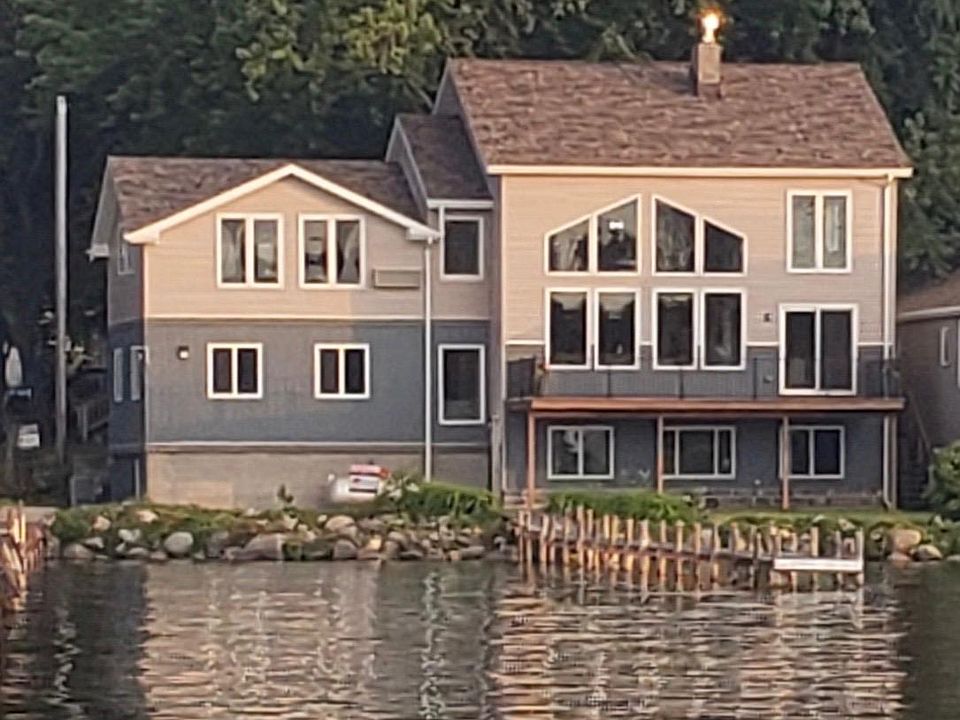 Breathtaking Views and tons of natural light flood this newly remodeled lake home! It's all new - gorgeous kitchen complete with coffee bar and butler's pantry. Vaulted living room ceilings with windows clear up to there, two story brick fireplace, best of all....plenty of room for all your guests - each bedroom has its own attached bath. Walk out lower level, over-sized deck and more. Call a Realtor today and take a look!