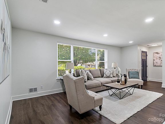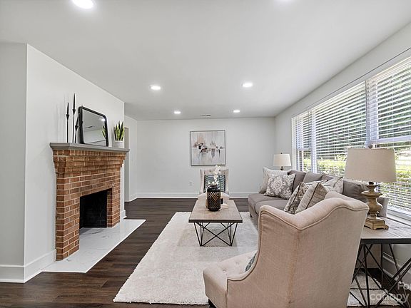 Beautifully Renovated and Ready for You! This rare 4 bedroom, 2 Bath house is located near Lenoir Rhyne University. Lots of appeal in style and located in the heart of Hickory. Beautiful luxury vinyl flooring throughout this one level home. New bright white Kitchen cabinets with soft close drawers styled with a tile backsplash and granite counters. Stainless steel dishwasher, range with hood and refrigerator with French doors Two bathrooms featuring tiled showers, new vanities and hardware with stylish glass barn doors. Primary with private bath. Spacious living room with a fireplace as a focal point. Laundry closet conveniently located in hallway. Lots of windows make this a light and airy home. Custom window blinds already installed. Single carport with storage closet. Great yard with large shade trees. City sidewalk along the front. Backyard is great for garden or play area.