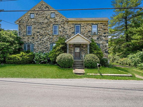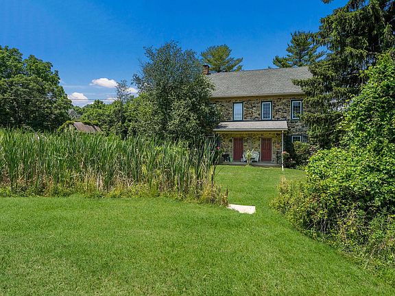 If you Crave Tranquility and Nostalgia but Still Desire a Convenient Location You Have Just Met your Perfect Match.  This Rustic 4BR 1 Bath Farmhouse sits Proudly on 4.28 Stunning Acres just Waiting for the Right Buyers to Bring Enough TLC to Restore it to it’s Former Glory.  The Stunning Views from every Angle are Worth the Price Alone.  Once Inside this Unique Home you will Appreciate the Random Width Wood Floors, Replacement Windows with Deep Sills and Exposed Beams.  The Main Level Offers an Eat in Kitchen with a Cozy Pellet Stove, Propane Cooking, Dishwasher, Built in Stainless Steel Microwave and Refrigerator.  Exit to a Big Summer Patio Just Poised and Waiting for Outdoor Dining.   There is also a Separate Dining Room and a Spacious Living Room with an Electric Fireplace. In addition you will find a Quaint Parlor/Sitting Room that is a Perfect spot to Relax with a Good Book. There are 4 Bedrooms and a Full Bath on the Second Floor.  The Primary Bedroom has Two Large Closets for plenty of Storage.  You can Access the Sleeping area by either the Main Staircase or a Turned Staircase in the Kitchen.  Another Pleasant Surprise is the Huge Bonus Room on the Third Floor.  The Possibilities are Endless.  A Full Unfinished Basement with Washer and Dryer and a Detached Garage are also Part of the Package.   Don’t Miss the Opportunity to See what this Wonderful Homestead has to Offer.  Personally Walk the Grounds and Witness Unobstructed Views of the Beautiful Horse Farm Across the Street,  the Charming “On Site” Stone Springhouse and Panoramic Views of the Lush Countryside for Yourself.  It will be Hard to believe that your Own little Haven is Situated Minutes from Route 309 and Interstate 78.  Get Ready to Fall in Love!