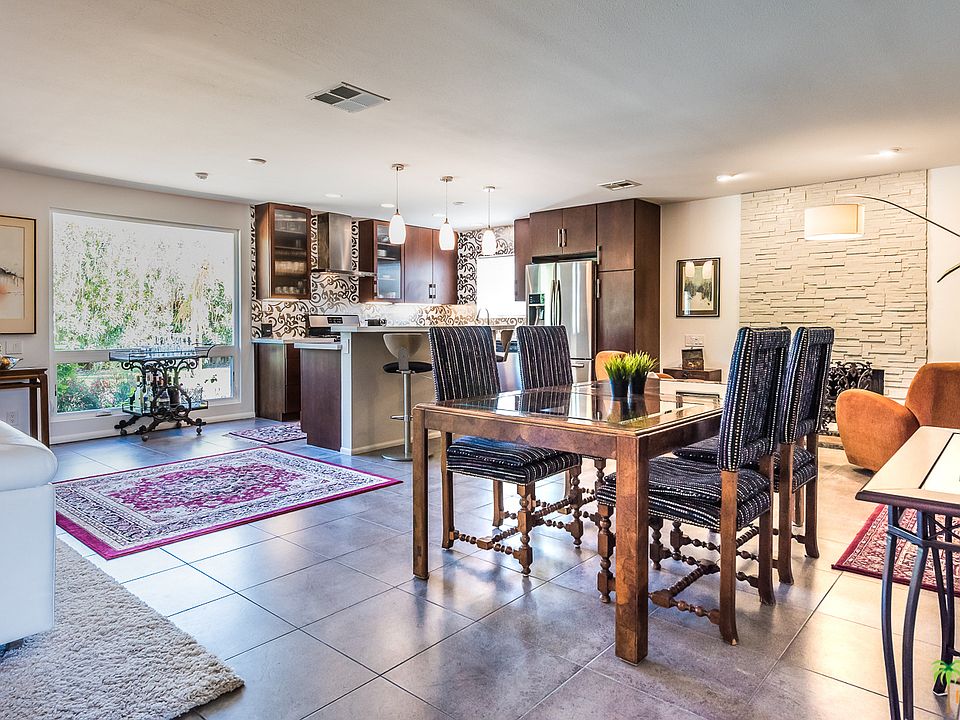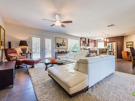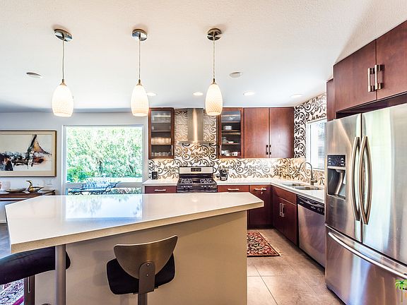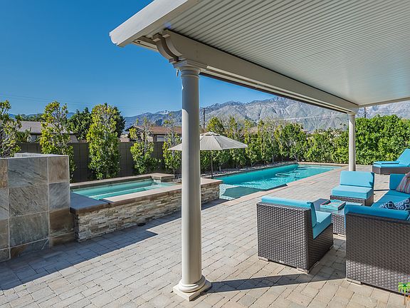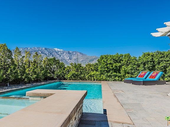 South Western Mountain views from the front loaded pool & spa in this BEAUTIFUL walled and gated property. Highly upgraded with incredible attention to detail. Open concept plan, the great room featuring custom kitchen with island, large dining area and a fireplace. All bedrooms have french door access to either the pool or to the peaceful rear garden. Custom cabinetry and highly upgraded baths. Large covered patio area with retractable awning, and a built in raised fire pit. The newer pool offers a HUGE raised spa and a tanning shelf.