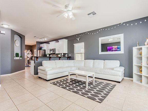 Spacious single story home with tile thought the great room, kitchen and halls. Beautiful 42'' white cabinets with stainless steel appliances and granite counters. Custom painting throughout the home. Across the street form the community park & pool. Other community amenities include a clubhouse, basketball court, dog park, and workout room Hoa also covers internet and trash pick up