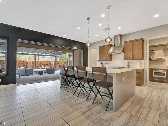 Beautifully upgraded 1 story home with an open floor plan and 3 car garage located in an exclusive gated Inspirada community. The homes finishes are luxurious at every detail. The gourmet kitchen features: Monogram stainless steel appliances, a waterfall island, Caesarstone countertops, with soft close clean lined cabinets and custom backsplash. The kitchen is complete with a large butler’s pantry and true pocket sliding doors that lead outside for the perfect indoor/outdoor shared living space. The great room is finished with vaulted ceilings, a custom fireplace and accent wall.  The living space is completed with luxury vinyl flooring, double pain energy efficient windows, and recessed lighting throughout. The primary bedroom features an oversized shower and luxury garden tub with a large custom walk-in closet. The extensive list of features is too long to complete in the space allotted. Schedule your private tour today.  This is one you don't want to miss.