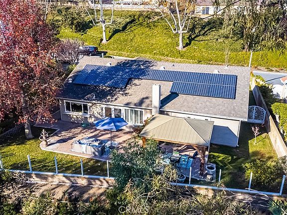 PAID OFF Solar with saves you hundreds on your electricity Bill!! This beautiful turnkey three bedroom home in a cul-de-sac truly captivates modern Southern California living style with spacious floor plans with indoor/outdoor spaces including a tankless whole house water system. There is a large living room and formal dining room with Beautiful wood Flooring throughout this well lit open Floor plan. The backyard is an entertainers Dream with great Views a large Patio cover and a beautifully landscape garden. Enjoy cooking in the airy gourmet kitchen with granite counter tops and beautifully updated cabinetry, custom backsplash, new tile floors,large farm house sink,new stove and new tile flooring. The spacious master suite with a vanity, plenty of room for a King size bed with nightstands, new luxurious plush carpet, with elegant tile flooring. The other two bedrooms are spacious and beautiful crown molding. Tastefully painted throughout the house Short distance to top rated schools, parks, shopping, restaurants, and freeways/toll roads.