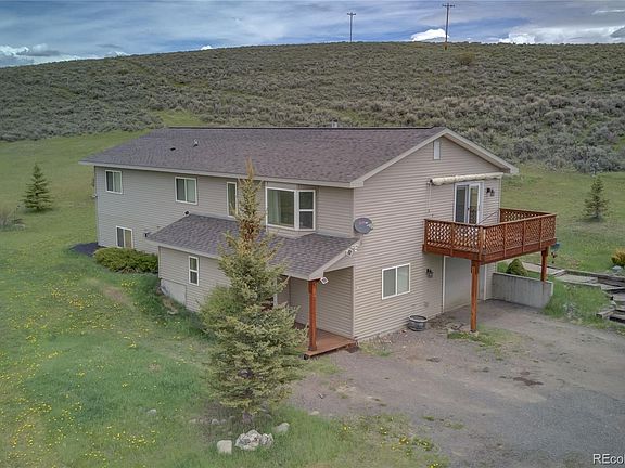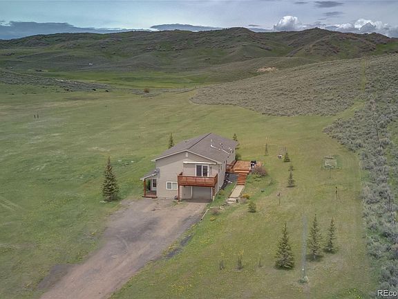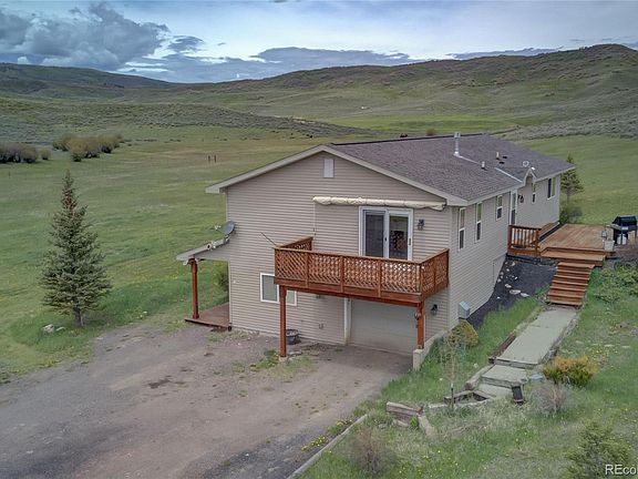This 1,873 square foot home has 3 bedrooms, 2 bathrooms & attached 1 car garage. The large pantry & spacious laundry room allows for plenty of storage. There is an additional 858 unfinished square foot garden level that is plumbed for a bathroom. From the balcony, there are views of the Flat Tops, Devil's Thumb, Green Ridge, & Seven Points. The partially fenced 9.88 acres and two loafing sheds is ideal for a hobby farm. With a private well,1,000 gallon underground propane tank & 1,500 gallon septic, this home has everything in place to live and enjoy on your own 9.88 acres of sweeping views.