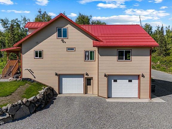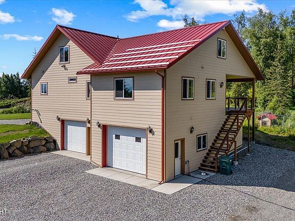 🛏️ 4 | 🛀 4 | 🚗 2 | 3340 SqFtNestled amidst the breathtaking beauty of the Chugach Mountains. Situated on 10.7 acres of pristine land, this enchanting abode offers an unparalleled living experience that harmonizes with nature. Step inside, and you're greeted by the warm embrace of cozy wood flooring that adds a touch of rustic charm to the interior ambiance.The heart of the home, the kitchen, beckons with its spacious layout and top-of-the-line stainless steel appliances. Solid surface countertops provide both durability and elegance, while ample cabinet space ensures that culinary endeavors are always a joy. Descending to the basement reveals a delightful surprise - a fully equipped second kitchen, complete with a full bathroom and additional living space. Whether hosting guests or seeking a private retreat, this versatile area offers endless possibilities for entertainment, relaxation, or creative pursuits. Ample space for parking cars, trucks, RVs, and trailers Property -View of Chugach mountains! -Large yard -Garden with greenhouse and raised beds -Young apple trees -Site prepped for 48'x80' shop. Ready for construction! -10.7 acres unzoned -Small creek behind house -Lots of developed areas for parking and commercial use -2000+ yards of topsoil piled and ready to screen -60yds garden quality topsoil piled beside the garden, ready for expansion. -Sand and gravel onsite 700+yds House -3280 sq. Ft. of living space -2 covered porches, one in front for entry and one in the rear off of master bedroom. 486 sq. ft total -3 and 4 way light switches throughout the house -High quality plumbing fixtures from Keller and Ferguson -Concrete lap siding -16" standing seam metal roof -Icf construction for all basement level walls -High density urethane insulation in all other walls and roof -Triple pane windows -In-wall cabinets add lots of extra storage. Removable back panels allow attic access -Glue down lvt and lvp flooring throughout the house -Tall toilets with elongated design -Radiant heat, with no gypcrete! -9 separately controlled heating zones throughout the house -5 ceiling fans -Spacious kitchen with quality appliances, rustic hickory cabinets, and solid surface tops -Under cabinet lighting in kitchen corners -Full kitchen and bath in basement -Huge garages! Almost 1200 sq. ft. total with (2) garage doors 10x8 and 12x9, and (2) exterior man doors -Cold storage room in garage. Insulated with high density urethane