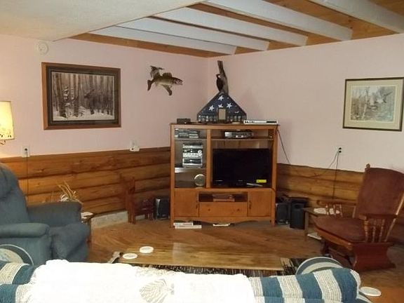 No reasonable offer turned away. Like new Log cabin w/ gradual lakeshore to a sandy shoreline. Features: custom kitchen, front porch, open floor plan, Outdoor wood fired sauna, storage buildings. Very nice dock included! Good fishing or swimming lake.