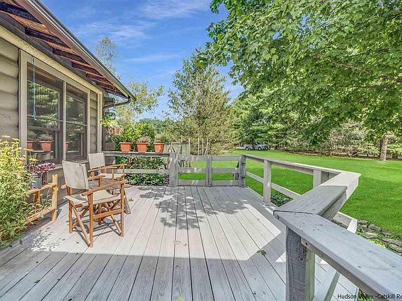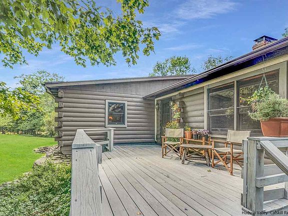 Is there anything cozier in The Catskills than a Westerly facing contemporary Log Home? This open, warm and inviting 3 bdrm, 2 bath home is on just under 6 acres with meadows, pastoral mountain views, and a spring-fed pond. All this in a peaceful location in the coveted low-tax Olive...this property has been lovingly maintained. Main living area has vaulted ceilings and five skylights providing a light and airy feel. Updated gourmet kitchen with breakfast bar also features a fully functioning vintage wood cook-stove to complete the picture of true Catskill mountain living. In addition there is a built-in fireplace and a freestanding Hearthstone soapstone wood burning stove. The four season sleeping porch that overlooks the views could be used as an office or yoga/reading room. A versatile property...the 6-stall farm animal barn coupled with the meadows could be the perfect gentleman's or gentlewoman's farm or just your own private piece of solitude.... The third bedroom of this home has a built-in fireplace and could easily be fit for a family room/office. The large lower level walk-out basement/garage could easily be transformed into additional living space, such as a rec room, music room, art studio or family room and still would leave room for 1 car garage and workshop...conversion of half of basement would give additional 600sf living space. This magical property is perfect for cross-country skiing or snowshoeing..the spring-fed pond, with some love and restoration, could once again be used for paddle boating or swimming. There is plenty of room to improve upon the already established gardens... Centrally located to ski mountains, restaurants, 15 minutes to Arrowwood, Westwind and Ravenwood Farms, the Ashokan Railtrail and Reservoir walking/biking paths, hiking, etc...