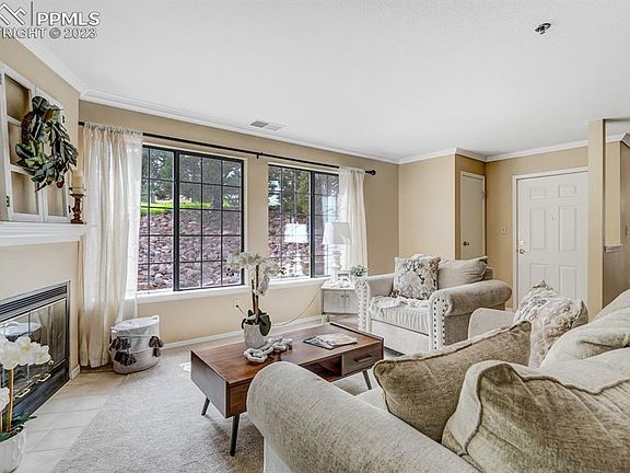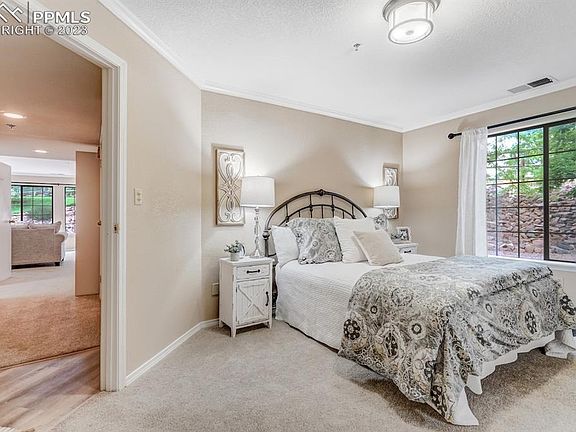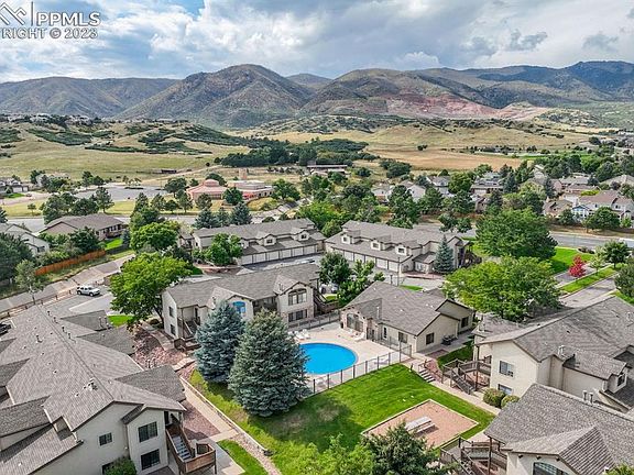 Welcome home to this tucked away, move-in ready, main level living condo in the Mountain Shadows community. This 2 bedroom, 2 bath end-unit ranch condo with oversized 1 car garage is ready for new owners. The home is ADA accessible - all one level (great for wheelchair access) with extra large hallways, hand rails in bathrooms, and extra wide doors. The open floor plan is light & bright and features a great room with fireplace and walkout to the covered back patio where you can relax in privacy, enjoy your favorite beverage and take in the views. The dining area adjoins the great room and kitchen for convenience. You will find a breakfast bar in the kitchen along with a good amount of storage space in the oversized pantry. The master bedroom offers a walk-in closet and attached full bath ensuite. The secondary bedroom offers ample space with two double door closets. Another full bath and laundry closet complete this home. You'll appreciate the brand new carpet, all new plumbing, and a washer and dryer less than a year old. Relax in the (rarely if ever used) central A/C during those warm summer months or cozy up to the gas fireplace when it gets cool out! Don’t miss your opportunity to live in this wonderful community! It's located across from sprawling Ute Valley Park for recreation, down the road from Garden of the Gods, close to major shopping centers, with easy access to the mountains and I-25.