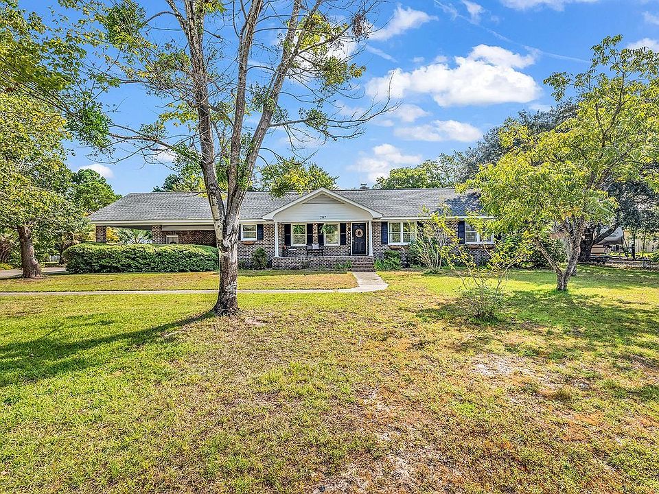 Rare opportunity to purchase this 3 bedroom, 2 bathroom home with no HOA sitting on almost 2 acres in Conway! 2187 Eastwoods Drive is the perfect set up, conveniently located on Highway 90, close to International Drive and Downtown Conway. As you turn into the property, you'll love the mature trees and charm this all brick home offers. Inside, the open floor plan provides a large living area with fireplace and built-in entertainment area, that opens up to a sitting area at the front of the home and leads to the sliding glass doors and covered back patio. The dining room and kitchen are spacious and have a great flow, with plenty of cabinetry and a set up that is ideal for entertaining and gathering. There is a large laundry room and utility closet that leads to the 2 car carport on one side, and the backyard on the other side. Three spacious bedrooms and two bathrooms are bathed in natural light and have spacious closets. Traveling outside, you will love the oversized single car garage with electricity and plumbing offering plenty of storage available and ready for you to turn it into your man-cave, office area, or even a mother-in-law suite. There is an attached storage area off the carport. Start making plans for the workshop and goat pen, ready for you to bring your own animals or the goats that are currently onsite are available to stay with the property. There is a garden area, grapevine, fenced blueberry garden with decades old bushes, chicken coop and everything you need to begin your homesteading adventure, or enjoy this quiet expanse of land with woods in the back of the property. Zoned CFA, this property is full of possibilities and part of the Carolina Forest school district and offers all the conveniences of being close to major through-fares to area restaurants, beaches and entertainment, but with the space and serenity that is rare to find these days. Take the virtual 3D tour and schedule your appointment today, this home will not last long!