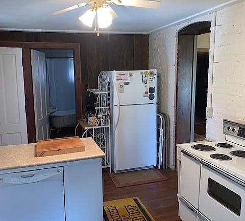 This stately, 1850's historic home has been beautifully restored. Hardwood floors and original woodwork throughout accent the high ceilings and chandeliers. The first floor includes a nice sized kitchen, formal dining area, living room, parlor, office space, butler's pantry and a recently updated full bath. Pocket doors offer privacy when needed. The impressive wooden staircase leads to the 4 carpeted bedrooms and the updated second floor bath. Included laundry is located in the first floor utility/mud room. Most of the furnishings can stay if desired!