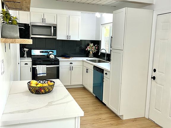 This Charming 2/1 home boasts a turnkey condition with a beautifully updated kitchen featuring quartz countertops and brand- new stainless steel appliances, new white cabinetry and a modern black tile backsplash. Additionally, new paint inside and out enhances the bright and airy feel of the home. The open floor plan enhances the spacious feel , complemented by the updated bathroom and stunning water resistant wood laminate flooring. This property also benefits from new windows throughout, and a brand new roof has been installed. Don't wait-this property has it all. Contact your realtor for a private showing!
