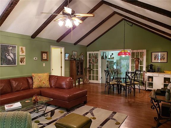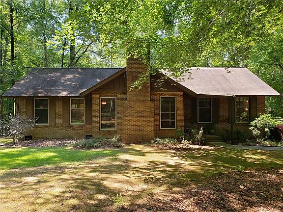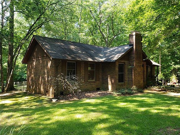 If you have been looking for that oasis away from the city, here it is! You will enjoy the drive down the very private, peaceful driveway to this beautiful brick ranch that sits on 3.38 acres on an absolutely beautiful lush haven. The home has two bedrooms each with an attached bath and a third bedroom that could also be used as an office or exercise room. There is not a bit of carpet in the home, just laminate and ceramic tile. The kitchen is updated with beautiful marble countertops, a huge stainless single bowl sink, and a gorgeous green backsplash to match the green oasis. The dishwasher, oven, and microwave are stainless and you have ceramic tile in the kitchen, laundry, and baths. You will be wowed by the high vauled ceiling with beams in the great room and the beautiful brick wood burning fireplace! Even though you feel isolated in this magnificent oasis, the fiber connection to the internet keeps you connected to the world. Outside you will find a patio area and a fenced area for pets. There is an outbuilding and an open shed for your mower, yard tools, and ATV. The HVAC is only about 3 years old and there is a new well pump. As you explore this one of a kind property, you will love the garden areas and the stream along the back. And don't forget about the owls, turkeys, woodpeckers, and deer that inhabit the property. You can also walk over to Lake Rabon. There are a few items that need repair in the home, and the price reflects that.