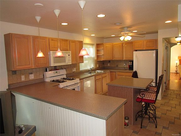 New roof and gutters top off this amazing home! Great find in a highly sought after neighborhood at a bargain price. Spacious two-story home on cul-de-sac in lovely Southern Gables community. Features four bedrooms, three baths, a large multi-use living room with a fireplace and a separate dining room. Kitchen is nicely sized with an open design, island and recessed lighting with attached family room. There are hardwood floors throughout. This special place sits on a huge lot at the end of the cul-de-sac. With mature shade trees and a private deck, the backyard has a park-like feel. There is space for gardening, recreation, RV storage, or for building a detached garage or sheds. Windows are custom, made easy-to-clean tilt-in style with wood blinds and new screens included. Low monthly utility bills. Finish the nearly full, open basement as you like. Easy access to Wadsworth Blvd.