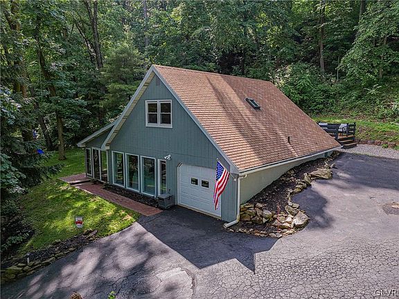 Pride in Ownership! A classic A-Frame home nestled on 3+ coveted acres in Lower Saucon Township, Bethlehem, PA is now on the market. Delivering a serene private retreat, this 2-bedroom, 2-bathroom beauty is the pastoral escape you've been seeking, without sacrificing urban convenience. Imagine living with the tranquil ambiance of the Poconos, right within the heart of the Lehigh Valley! Featuring an interior living area of 1136 sqft, this home offers a unique blend of comfort and charm. Each bathroom is skillfully designed to provide a soothing experience, while the bedrooms promise restful nights overlooking your expansive property. The strategic location of this home is a significant advantage. It is a stone's throw away from Route 78, making your trips to work or leisure destinations swift and stress-free. Plus, all of Bethlehem's amenities are within short reach - whether it's shopping, dining, entertainment or outdoor activities, there's something here for everyone. The exterior of the home embodies the quintessential A-Frame architecture. The generous plot ensures ample space for future customization and expansion. The large rear deck offers plenty of entertaining space. This delightful home is a rare gem, an oasis of natural beauty and tranquility encapsulated within Bethlehem, offering the best of both worlds - rural respite amidst urban convenience. Don't miss the 1 car attached garage space and the large detached garage!