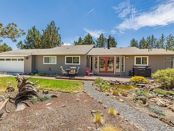 Discover a peaceful retreat on over 2 acres, just minutes from all the amenities Bend has to offer. This charming 2100 + sq ft split-level home blends comfort and functionality seamlessly. The home features a spacious upper-level primary bedroom, while the main level hosts 2 guest bedrooms. Cozy up by the wood-burning stove in the living room or unwind on one of the 3 decks, surrounded by a beautifully landscaped backyard and natural acreage. A nearly 600 sq ft single-level guest house offers versatile space for an artist's studio, home office or a 1-bedroom apartment. Enjoy serene surroundings from the deck and the convenience of a gravel driveway, ideal for guests or creative pursuits. Addtl features include a 2-car garage, a separate shop/garage and a full RV hookup. Located on a quiet cul-de-sac, the property boasts old-growth trees and lava rock formations, offering a unique blend of natural beauty and practical living spaces. Perfect for those seeking a tranquil retreat.