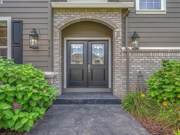 Welcome home to this beautifully maintained, one-owner, posh home, nestled on a sunny corner lot in Tualatin's beloved, sought-after, Ibach Park neighborhood — top schools, easy commute, lush parks, where community thrives. Built in 2006 and offering nearly 3,000 sq ft (2,996), this inviting home boasts timeless charm, amazing updates, and well-designed spaces to live, gather, and unwind. Every inch reflects care—and it shows. Curb appeal is undeniable with a stamped concrete driveway, stately new brick pillars, fresh exterior paint, and cheerful hydrangeas welcoming you with quiet elegance. Inside, rich hardwood floors, crown molding, detailed wainscoting, and fully wrapped windows create bright, inviting warmth filled with timeless charm. The vaulted foyer offers a grand hello. At the heart of the home is a stunning, new chef’s kitchen with quartz slab counters, a vast center island, breakfast bar seating, a custom-panel KitchenAid fridge, stainless double ovens, a gas range with hood and pot filler, a walk-in pantry, and sleek cabinetry—a space perfect for vibrant soirées or quiet nights in. Upstairs, the tranquil primary suite features high ceilings, a warm fireplace, and a spa-like en-suite with soaking tub, walk-in shower, new quartz countertop, and an organized walk-in closet. Two great bedrooms, a roomy bonus/media space, a private office with charming barn doors, a laundry room with a utility sink, and ample storage complete the home. Step outside to your new fully fenced backyard retreat — new turf, elegant pavers, peaceful water feature, and stone wall with built-in seating, invite you to relax morning or night. Notable upgrades include: updated hall and powder baths, new water heater, fresh exterior paint, Vacuflo central vacuum, Generac generator hookup, Trex garage stairs, new garage motor and springs, built-in garage storage, and app-controlled sprinkler system. A rare blend of comfort, character, and location—this home is truly something special.