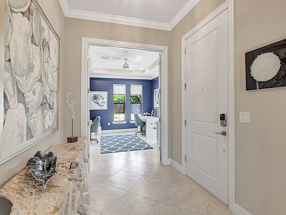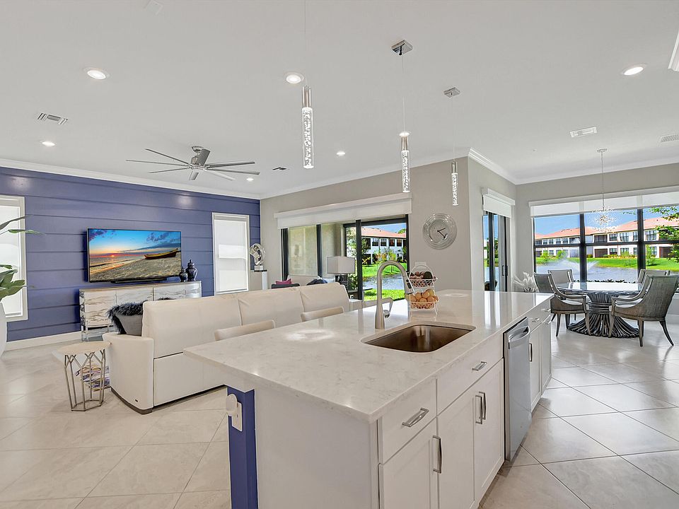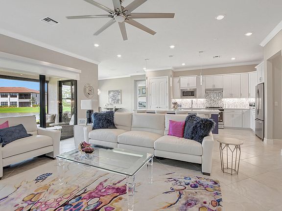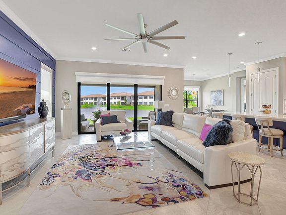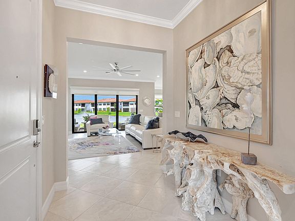 Welcome home to this beautifully designed lakefront home built in 2020 with all impact windows and sliders. The open concept kitchen has a huge island for entertaining, white designer cabinets, quartz counters, stainless steel appliances and a walk in pantry. Freshly painted with crown moulding throughout. The primary bedroom has lake views, a bathroom with double sinks, shower and a walk in closet. The light and bright office off the entry features french doors. 2 car garage with plenty of storage. A large laundry room with cabinets and a sink. The tranquil patio has a new electric screen and overlooks the lake. Boca Flores is a 55 + peaceful gated community in West Boca Raton close to shopping and parks and a 15 minute drive to the beautiful Atlantic Ocean.