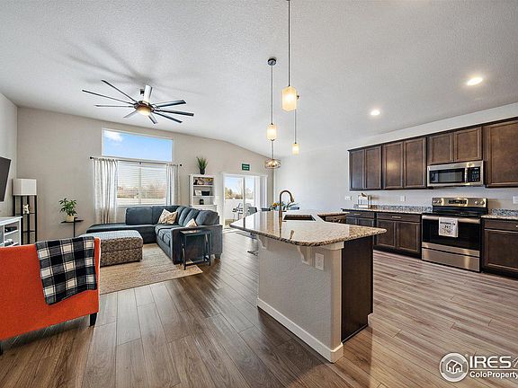 ****MOTIVATED SELLERS**** This is a gorgeous Ranch style home with a beautiful kitchen with a granite island and countertops. Tons of updated cabinets with stainless steel appliances, pantry and open to the living room and dining room. The main floor has three bedrooms including the primary bedroom with a large walk-in closet and separated double vanities with a large, seated shower. The secondary bedrooms on this floor are equal in size and have a Jack-and-Jill bathroom. Wide plank hardwood flooring throughout the common areas. This main floor has everything you'd ever need, until you descend into the massive, finished basement with high ceilings offer ample space for a game room, family room, theater room etc. There are two oversized rooms in the basement and another full bath. Exterior features a covered front porch to take in Colorado's beautiful sunsets and in the private backyard there is an extended patio and the shed will remain with the property. 1/2 mile to Colorado's newest TPC Gold Course