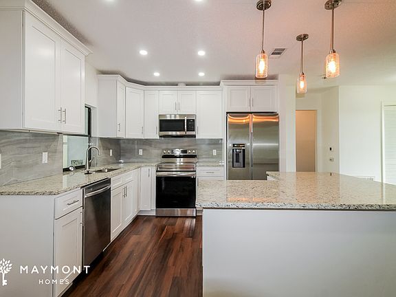 Monthly Recurring Fees: $10.95 - Utility Management Maymont Homes is committed to clear and upfront pricing. In addition to the advertised rent, residents may have monthly fees, including a $10.95 utility management fee, a $25.00 wastewater fee for homes on septic systems, and an amenity fee for homes with smart home technology, valet trash, or other community amenities. This does not include utilities or optional fees, including but not limited to pet fees and renter's insurance. Welcome to this beautifully updated 2-bedroom, 2-bathroom home offering 1,158 square feet of modern comfort in Spring Hill, Florida. From the moment you arrive, you'll appreciate the inviting curb appeal and attached one-car garage, along with a spacious interior designed for both function and style. Inside, sleek dark hard surface flooring flows throughout the open concept floorplan, complemented by a bright interior and large windows. The kitchen is the centerpiece of the home, featuring a large island, white cabinetry, stainless steel appliances, recessed lighting, and modern pendant lights that add a warm touch overhead. The bedrooms are generously sized and filled with natural light, each with ceiling fans and closets for storage. Both bathrooms have been thoughtfully renovated with marble-tiled showers, updated vanities, and sleek modern hardware for a polished look. An attached sunroom with vaulted white ceilings and exposed beams offers a perfect bonus space for relaxing, entertaining, or enjoying the view of the backyard. Laundry is conveniently located in the garage, keeping your living spaces clutter-free. Located in the heart of Spring Hill near local shopping, parks, and the Gulf Coast, this home is a standout opportunity. Apply today! *Maymont Homes provides residents with convenient solutions, including simplified utility billing, a flexible rent payment option, and an affordable security deposit alternative. Visit our website or contact us for more details. This information is deemed reliable, but not guaranteed. All measurements are approximate. Actual product and home specifications may vary in dimension or detail. Images are for representational purposes only. Some programs and services may not be available in all market areas. Prices and availability are subject to change without notice. Advertised rent prices do not include the required application fee, the partially refundable reservation fee (due upon application approval), or the mandatory monthly utility management fee (in select market areas.) Residents must maintain renters insurance as specified in their lease. If third-party renters insurance is not provided, residents will be automatically enrolled in our Master Insurance Policy for a fee. Select homes may be located in communities that require a monthly fee for community-specific amenities or services. For complete details, please contact a company leasing representative. Equal Housing Opportunity.This home is move-in ready. Schedule your tour now or start your application today. This property allows self guided viewing without an appointment. Contact for details.