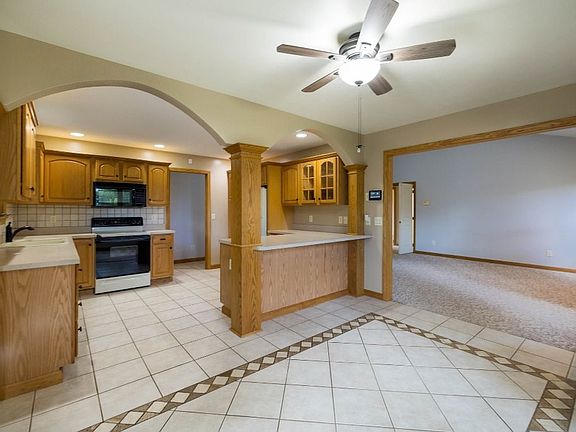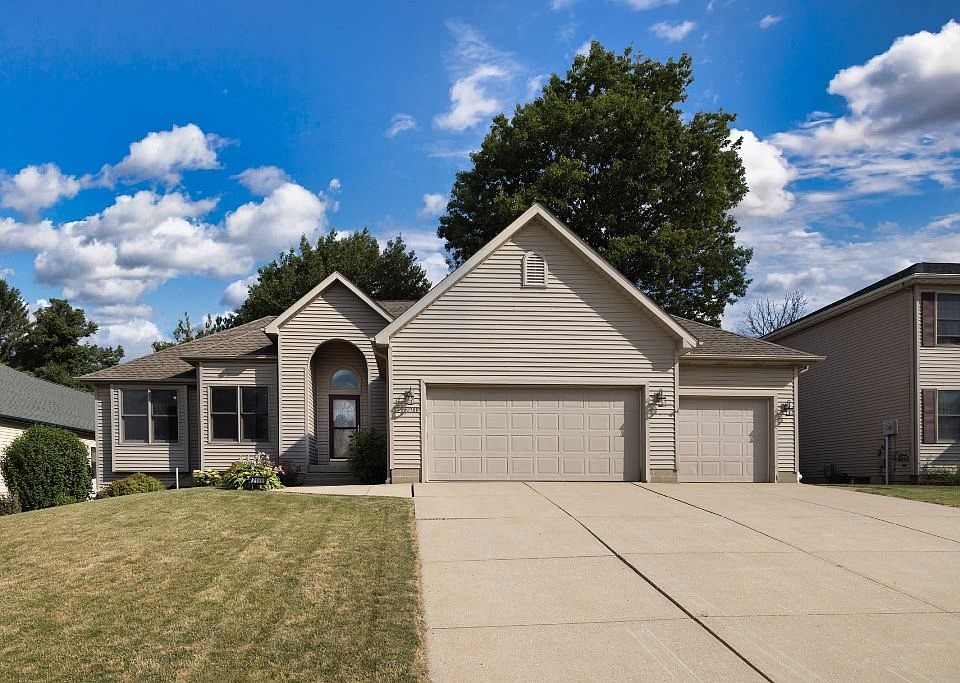 SO MUCH to love! Beautiful one-story home loaded with extras, arched front porch entry & vaulted great room, wdbr. fireplace, kitchen w/counter dining, master suite w/California closets, whirlpool tub & trey ceiling, 1st-floor laundry, profess. finished basement w/2 bedrooms, full kitchen, gathering area & handicap bath, private, fenced yard with covered porch, brick patio, fire pit, storage shed & lake views, 3-car garage w/basement entry, 1-year warranty. Available NOW!