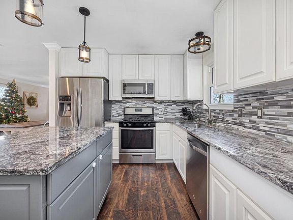 • Kitchen/Dining Room Combo, Open Floorplan, Walk-In Closet(s), Kitchen Island, Granite Counters, Pantry, Double Vanity, Lever Faucets, Tub, Workshop/Hobby Area