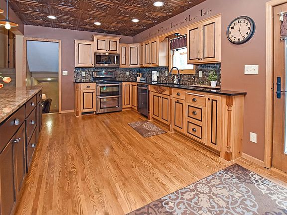 MULTIPLE OFFERS RECEIVED. OFFERS DUE BY 3/19/23 AT 8PM. Owners for over 30 years have meticulously cared for and nicely updated the home throughout. Open & bright main level with gorgeous custom Alder cabinets, boasting metal pull outs, under cabinet lighting, granite & Stainless appliances. Doors & drawers are soft close. 3 bedrooms on upper level with a stylish full bath with tile tub surround. Lower level with lookout windows, features a gas fireplace and renovated 3/4 bath. Lowest level has a perfect flex room for home office, amusement room, or non-conforming bedroom. DON'T MISS looking at the oversized, heated garage that leads to Coco's Paradise Lounge. This incredible space is enjoyed year round, with wood stove & 2 propane heaters for winter fun. For warm weather fun, remove the wall panels and windows to open it up. Great space for entertaining all year long! Dimensions are shown as 3 season porch. Home is nestled on quiet street with large fence yard. WELCOME HOME!