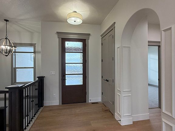 This stunning home is set on a spacious lot and boasts a range of modern features. The stylish bathrooms are equipped with custom cabinetry and sleek quartz countertops. The expansive kitchen, featuring a central island and a convenient walk-in pantry, is perfect for both cooking and entertaining. Tile surrounds enhance the bathrooms, while the impressive mudroom and laundry area offers ample space for organization. The master suite includes a luxurious en-suite bathroom with double sinks, freestanding tub and a generous walk-in closet. The finished basement adds even more living space, with a large family room, three spacious bedrooms, a bathroom, and great storage. Step outside to enjoy the shaded back patio, ideal for relaxation or gatherings. Located in the desirable Crestview Estates Division, this home offers quick access to scenic hiking and biking trails. Plus, the home features an energy-efficient LED lighting package throughout.