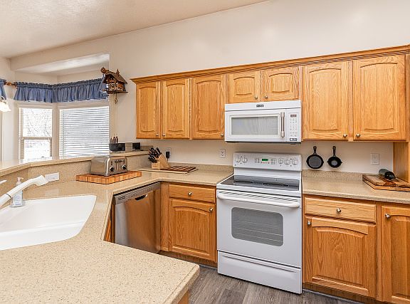 - inclusions: Range, Microwave, Window Coverings, Alarm System, Water Softener: Own