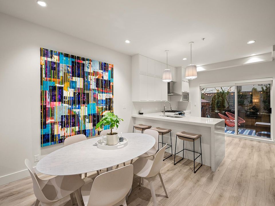 Welcome to The Canvas - a contemporary and sought after townhouse complex in the heart of Kitsilano. Secure, private and lush off street courtyard entry with a large footprint over 3 levels. The main floor offers a bright open plan living, dining and kitchen area with an office nook leading to a private outdoor oasis - great for entertaining! The second level features a large second bedroom and third bedroom / den, bathroom, laundry and large storage. The spacious master suite occupies the entire third level with a large patio off the bedroom, walk-in closet and spa-like master bathroom with double shower. Renovated by Margot Keate in 2020, this centrally located home is within walking distance to local shops, restaurants and Kits Beach and has 2 parking stalls! Open: May 20 & 21 2-4pm.