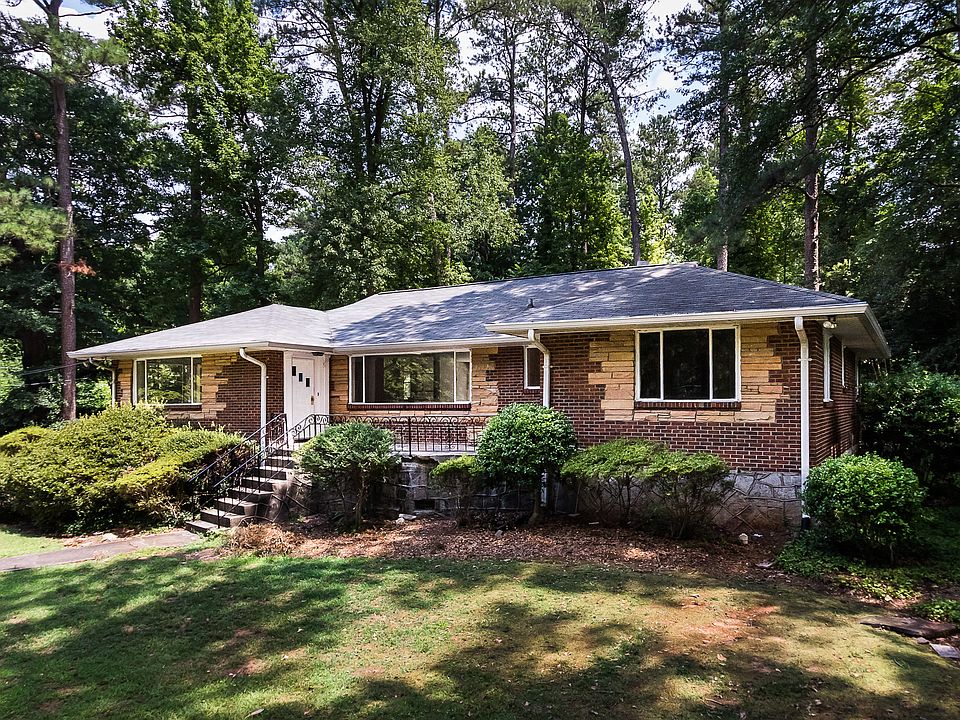 This brick deco home delivers a prime locale along the crest of downtown Decatur, mere moments from Olmstead Linear Park and Fernbank Forest. A welcoming floorplan showcases a large living room and dining area with stunning pictures windows, hardwood floors, and built-in bookcase. Stainless steel appliances shine in the recently renovated granite kitchen with breakfast nook. Enjoy the outdoors with professional landscaping and an expansive, tree-lined, brick and stone patio. A one-car garage and unfinished basement anchor this delightful dwelling.