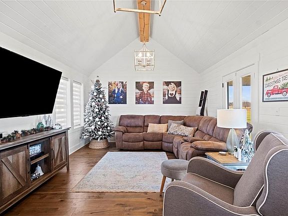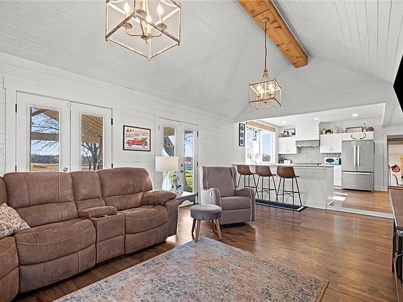 Discover the perfect blend of rustic charm and modern comfort with this stunning 3-bedroom farmhouse nestled on over 43 acres in the award-winning Basehor-Linwood School District. This home offers a modern open floor plan and a spacious covered back porch, perfect for enjoying the serene surroundings. This picturesque property, known as Dreamland Farm, features a spacious barn complete with a cozy bunkhouse, ideal for guests or storage. Enjoy evenings by the pond and the vast open spaces perfect for outdoor activities, livestock or farming. With its convenient proximity to Kansas City and Lawrence, this is an idyllic retreat for those seeking tranquility and a vibrant rural lifestyle.