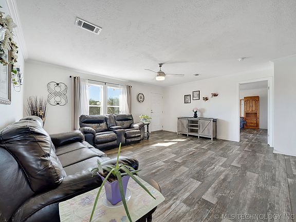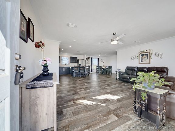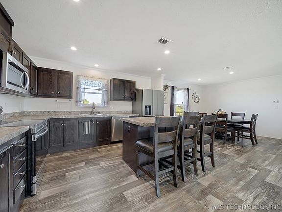 ***SELLER OFFERING $5,000 TOWARDS RATE BUY DOWN OR BUYER CLOSING COSTS!!!*** Built in 2022. This beautiful 4 bedroom, 2 bath home with TWO living areas sits on 5 acres! Large open floor plan with vinyl flooring throughout. Kitchen has TWO large pantries, island with seating for 3, and the refrigerator stays! Master bath has double sinks and oversize shower. Large laundry room with ample storage and space! New aerobic system! Brick skirting and permanent tie down to permanent foundation. 24x32 shed that was re-roofed and new siding added. RV clean out tied to septic system. Five year manufacturer warranty! Easy access to Hwy 66.