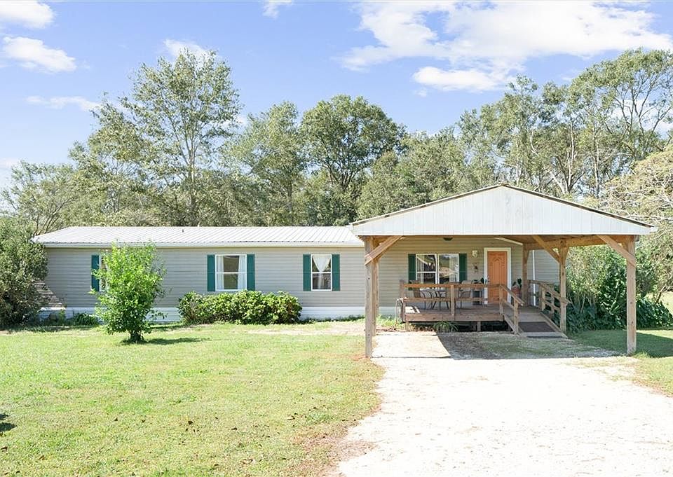 Location! Location! Great location away from city restrictions. You have the option to raise animals. Nestled on 3 acres of land, this home offers 4 Bedrooms and 2 full Baths. Freshly painted inside. The spacious living room and dining room provide plenty of room for any gathering and kitchen offers plenty of counter space overlooking a large deck. The Master Bedroom includes an adjoining Office & Walk-in Closet while the Master Bath includes a large soaking tub and separate shower. Outside, you'll find a huge greenhouse lay-out for growing plants & vegetables year-round along with a large storage building for all your tools & yard equipment. The Well Water pumps provide plenty of water for your home and plants. You'll enjoy the porches both front & back along with covered parking, and small fenced area ideal for your pets as well. This home with 3 acres of land it is just minutes from the interstate and a short drive to our beautiful Gulf Beaches. Don't wait too long to check out this beautiful property