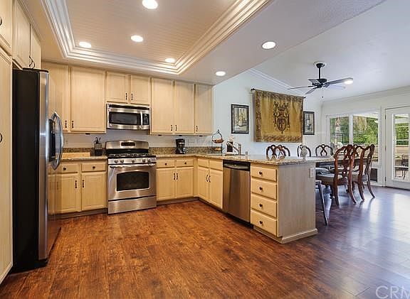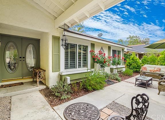 Here it is! End of single loaded cul de sac street, single level 3 bedroom, 2 bath pool home! Enclosed and inviting front country patio with brick insets! Double decorative oval glass doors to formal entry with crown mouldings! Large open kitchen with granite counters, stainless appliances (fridge included), recessed lights, lots of cabinets, crown moulding inset and breakfast bar! Handsome wood laminate flooring throughout! Dining/living combo with ceiling fan, vaulted ceilings, mouldings, brick fireplace and French doors to rear yard! Separate formal dining room too! Baths include newer cabinets, toilets, fixtures, mirrors and enclosures! Plantation shutters in bedrooms! Master has walk-in closet and its own slider door access to rear yard! Large entertaining, lush rear yard includes pool, spa and brick patio with patio cover! The home backs to hills, trees and ravine with convenient walking trail access nearby! LISTED BY JOHN & DIANE CIRIGNANI Call 949-233-3821 to schedule showings. www.DianeSellsOC.com