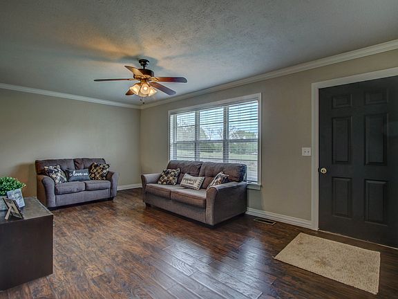 Beautiful updated brick home with split floor plan, newer roof, gorgeous kitchen with new cabinets, stainless steel appliances and pantry. This lovely home is painted and designed in warm neutral colors through out. It features a spacious living room, kitchen with breakfast bar, dining room with patio doors leading to the huge back yard. This lovely home is located on a paved road in the country but only 5 minutes from town and shopping.