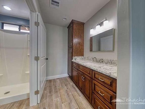 Welcome to your dream home! This lovely 3-bedroom, 2-bathroom residence offers approximately 1363 square feet of living space and sits on a sprawling 1.25-acre parcel of level, usable land. Quality craftsmanship, modern amenities, and thoughtful design make this property a true gem.As you step inside, you'll be greeted by the gorgeous granite countertops that adorn the kitchen and bathrooms. **Brand new porcelain tile flooring just added throughout most of home. New windows also recently replaced throughout! ** The stunning kitchen boasts custom cabinetry with soft-close features, under cabinet lighting, and stainless steel appliances.The spacious living room is perfect for relaxing or entertaining, and the home features wheelchair-accessible doors, ensuring that everyone can enjoy this beautiful abode. Central HVAC keeps the interior comfortable year-round. Recently painted, the interior has a fresh and inviting feel.This property doesn't just stop at an exceptional interior; it offers much more. An oversized attached 2-car garage provides ample parking and storage space, while an additional 1000-square-foot detached workshop provides endless possibilities for hobbies and projects.A private well supplies your water needs, and there's an additional storage building that can serve as a small workshop or extra storage space. The outdoor space includes apple trees, berries, and a sales shed out front. The options are limited only by your imagination.Conveniently located, this property is an excellent choice for commuters. Whether you need to get to work or want to enjoy the many amenities Tehachapi has to offer, this location has you covered. Additionally, you'll have the advantage of a fiber optic internet connection, ensuring that you stay connected in our modern, digital world. Don't miss the opportunity to make this meticulously maintained and thoughtfully designed property your own. It's the perfect combination of elegance, functionality, and space, all nestled on 1.25 acres of picturesque land. Make an appointment today to see this exceptional property in person!