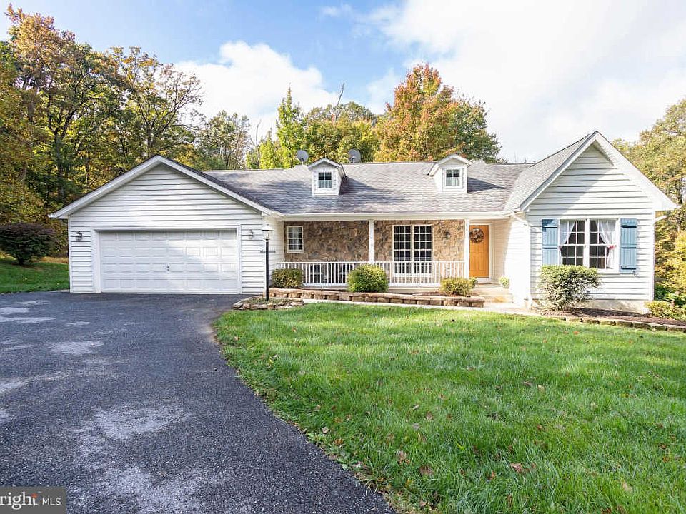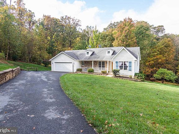 Amazing location for this charming, story book rancher boasting open layout and plentiful updates!! First impressions from large front porch and welcoming curb appeal that invite to spacious dining room, perfect for hosting and entertaining! Open family room area with cozy stone-surround wood fireplace and filled with natural light! Step outside to elevated deck that takes advantage of gorgeous wooded backdrop! Updated kitchen with maple cabinets, neutral counters, statement backsplash, and peninsula with breakfast bar! Private owners suite with walk-in closet and attached bath! Full unfinished walk-out lower level offers the perfect opportunity to create your dream space! Updated HVAC, deck and patio spaces! Gorgeous setting amongst 5 acre lot adjacent to Greenbrier State Park and the Appalachian trail! Welcome Home!